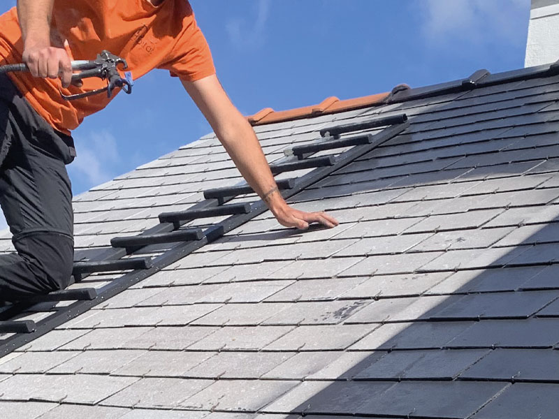 Au fil du temps, les algues, lichens et champignons se développent sur votre toiture et sont susceptibles de l’endommager. En effet, ces végétaux fragilisent la perméabilité de la toiture en altérant son étanchéité. La résine de toiture va assainir les tuiles/les ardoises tout en éradiquant les germes et racines. Sans pour autant endommager la toiture. Ainsi, votre toiture sera imperméabilisée et protégée de l’humidité.